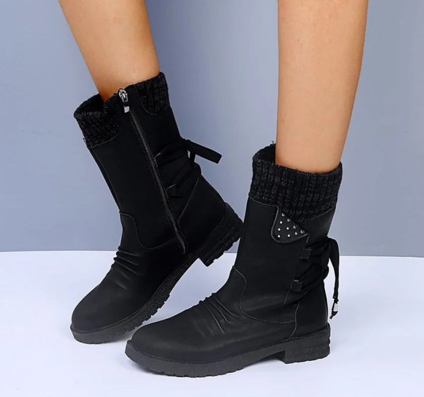 Ботинки женские зимние до середины икры, замшевые теплые боевые бот...