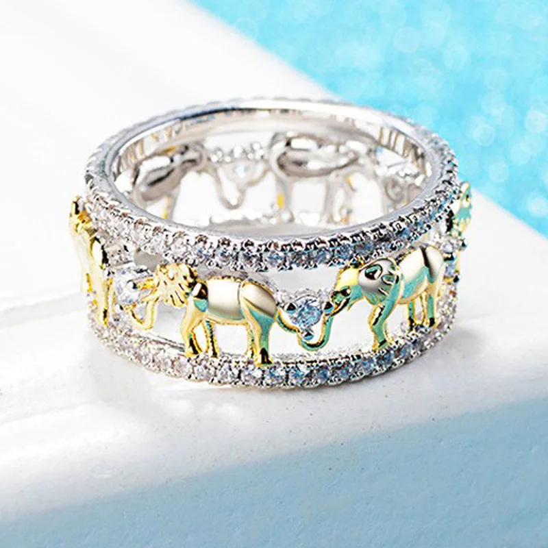 Популярное двухцветное кольцо в форме слона со сверкающими фианитами AAA стразы для женщин и мужчин ювелирные изделия вечерние Ринок