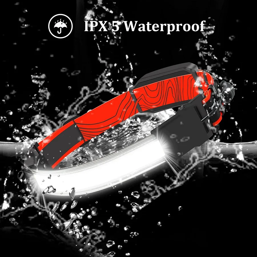 Головной Светодиодный фонарь с датчиком движения, COB со встроенным...