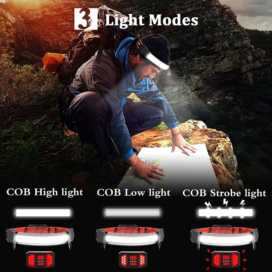 Светодиодный налобный фонарь COB с красным задним фонарем, Головной...