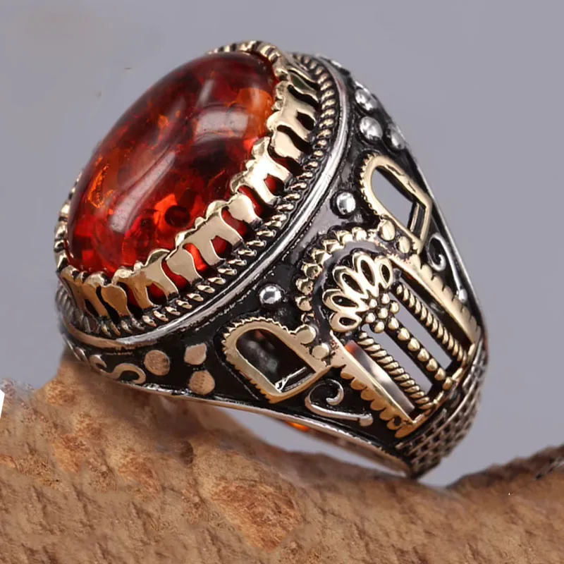 Мужское кольцо на палец с гравировкой, двухцветное кольцо с красным кристаллом и неравномерным геометрическим узором, Ювелирное Украшение для вечеринки, размер 6-13