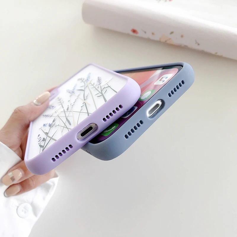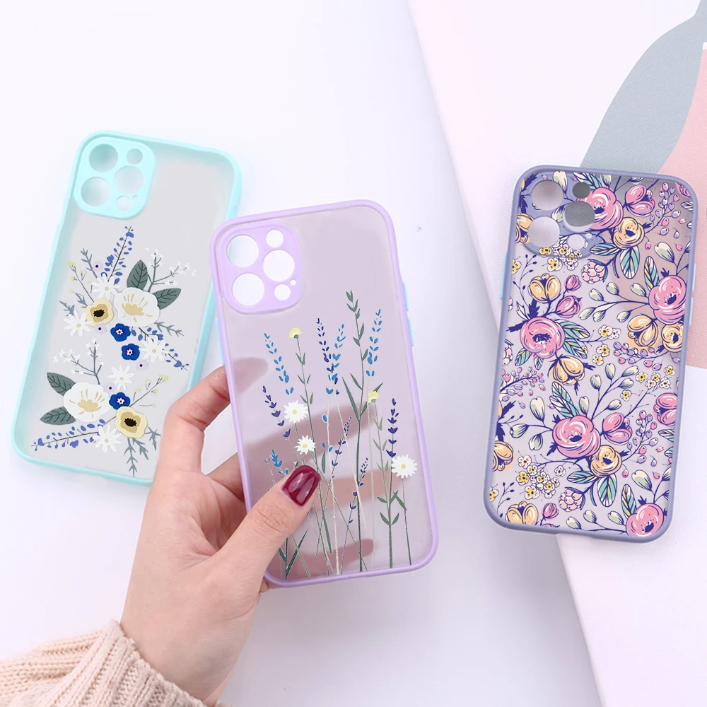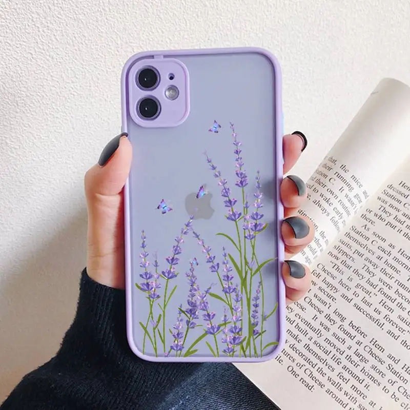 Красивый чехол для телефона iPhone с цветочным рисунком лаванды для 13 12 11 Mini Pro XR XS Max 7 8 Plus X, матовый прозрачный Модный чехол с цветами