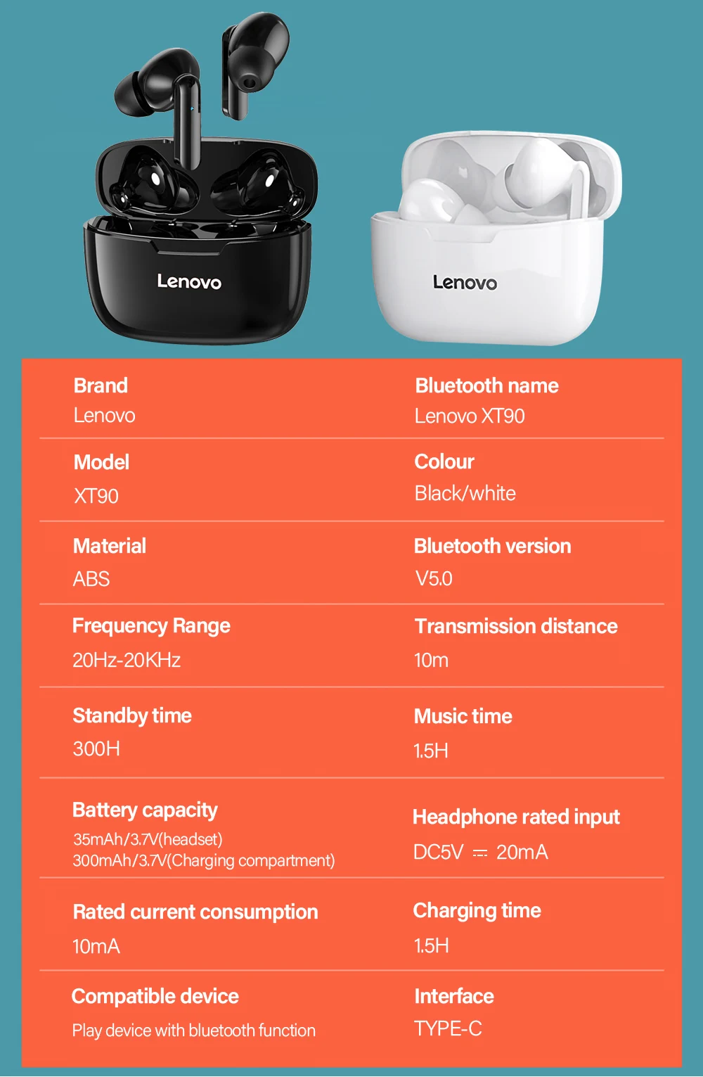 Оригинальные беспроводные наушники Lenovo XT90, Bluetooth 5,0, TWS ...