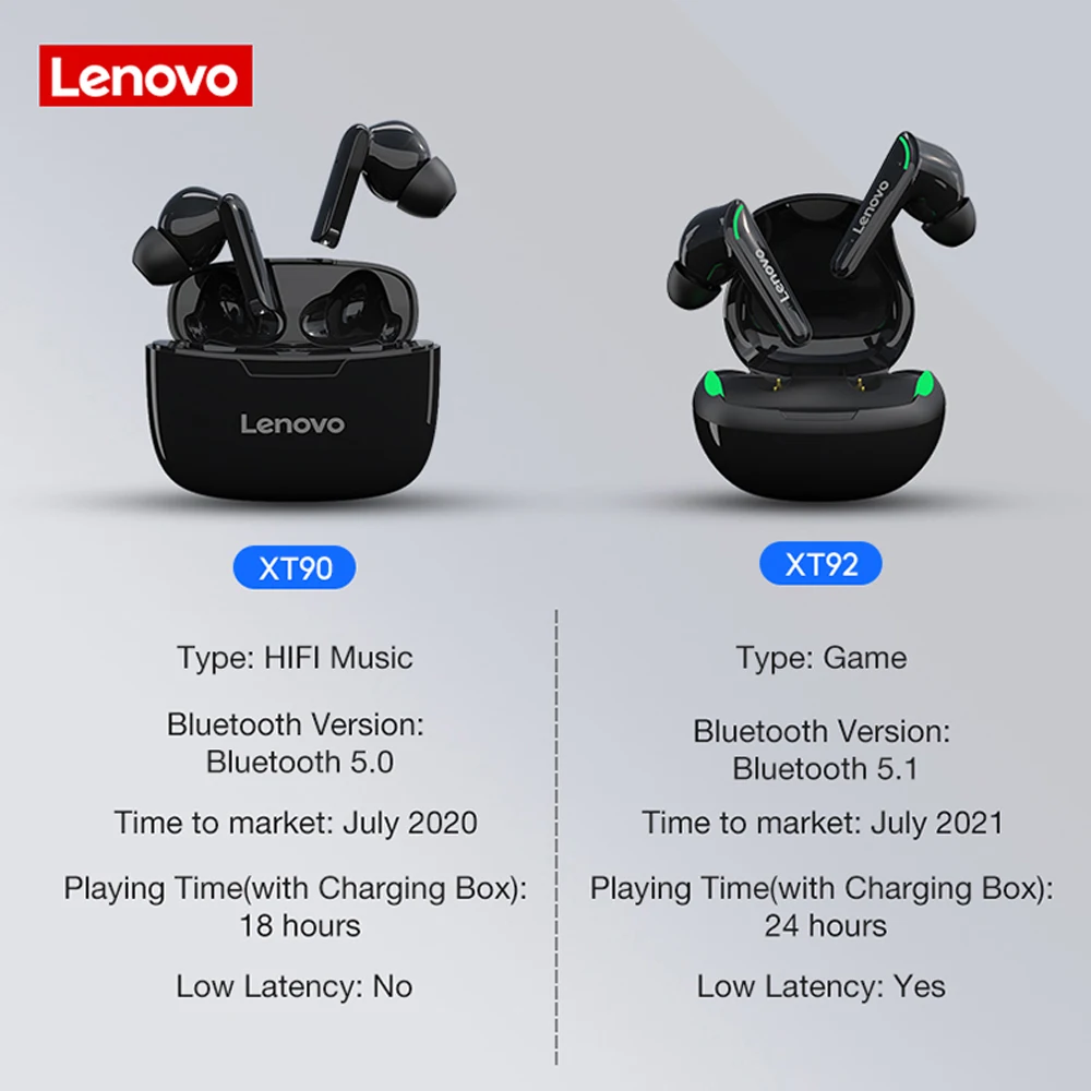Беспроводные наушники Lenovo XT90 XT92 Bluetooth наушники TWS гарнитура спортивные наушники с низкой задержкой и сенсорным управлением водонепроницаемые IPX5 наушники для фитнеса