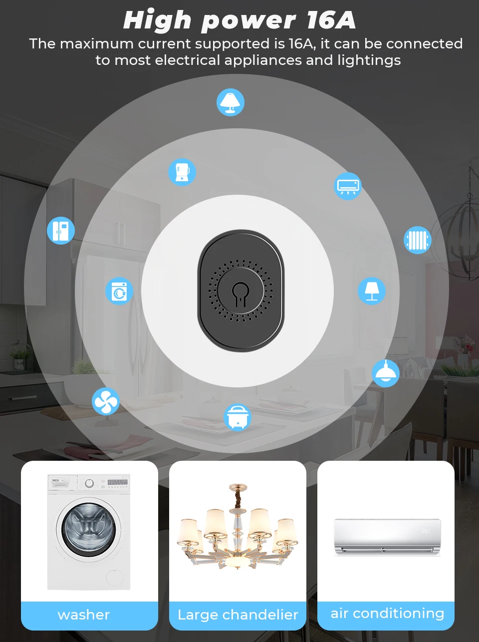 Умный Wi-Fi переключатель с поддержкой Alexa Google Home, 16 А