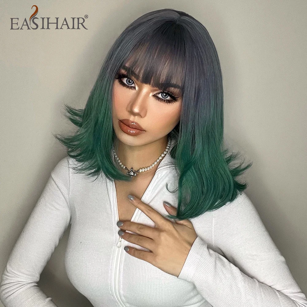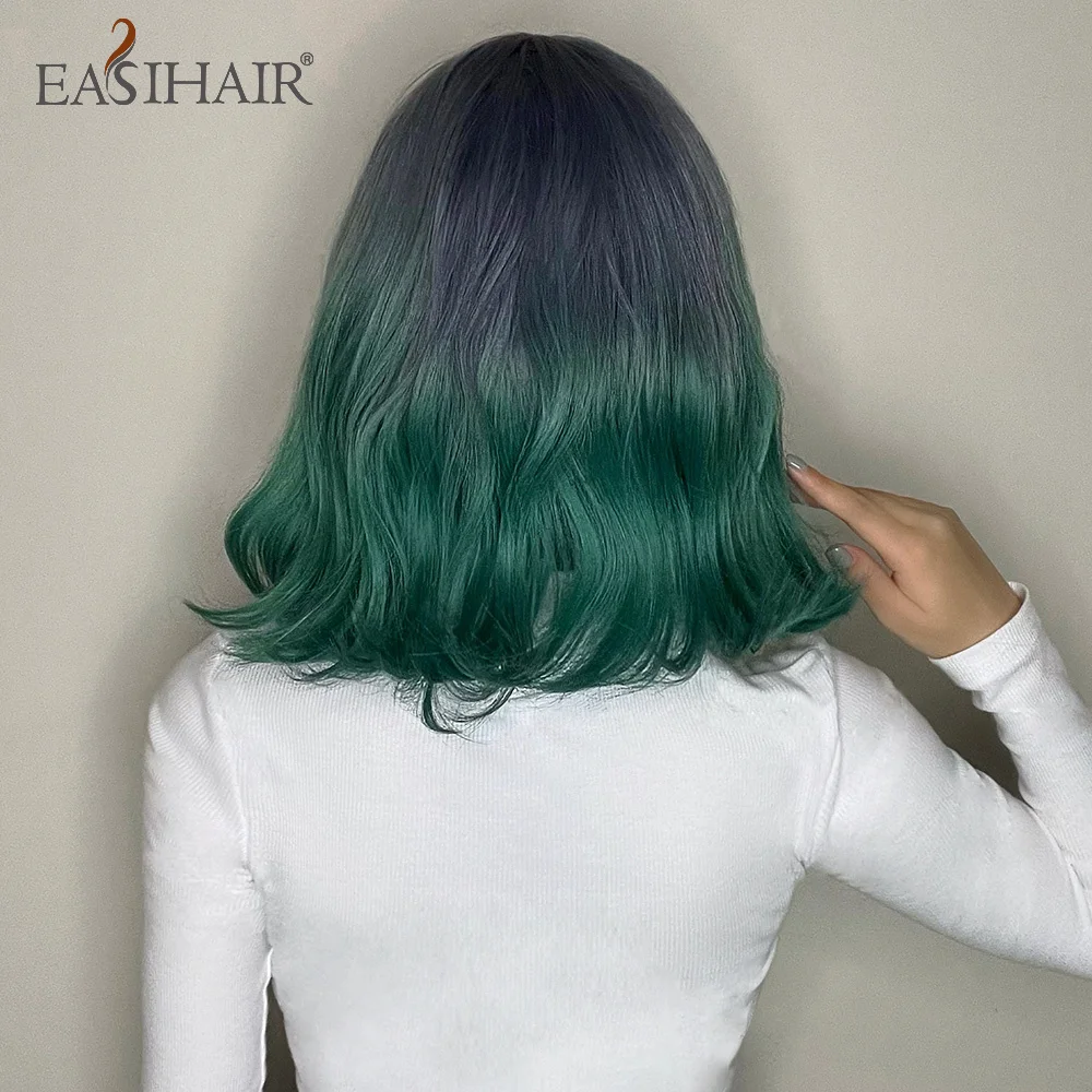 Короткие волнистые синтетические парики EASIHAIR BoBo с челкой Омбре пепельно-голубые зеленые волосы парики для женщин термостойкие Натуральные Цветные волокна