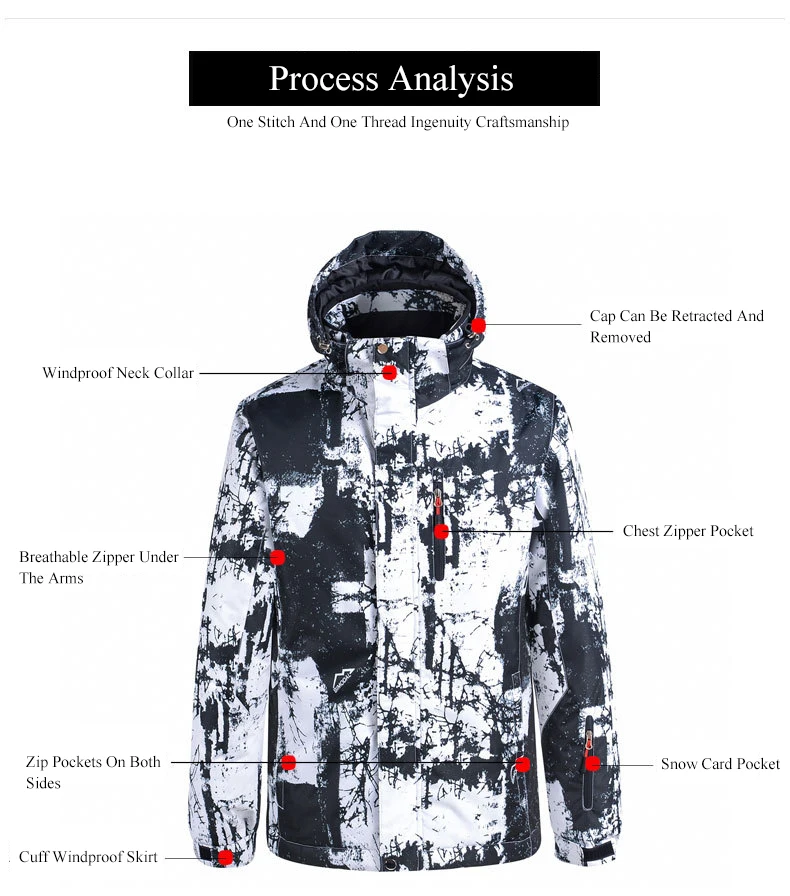 1. Поверхность зимних сноубординга с прочным водоотталкивающим покрытием может эффективно блокировать жидкости и пятна, всегда держать вас в сухости и чистоте независимо от условий.