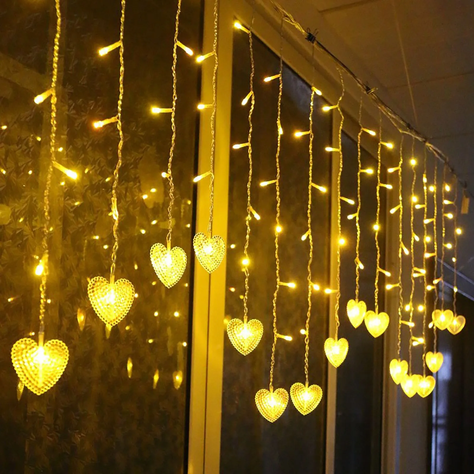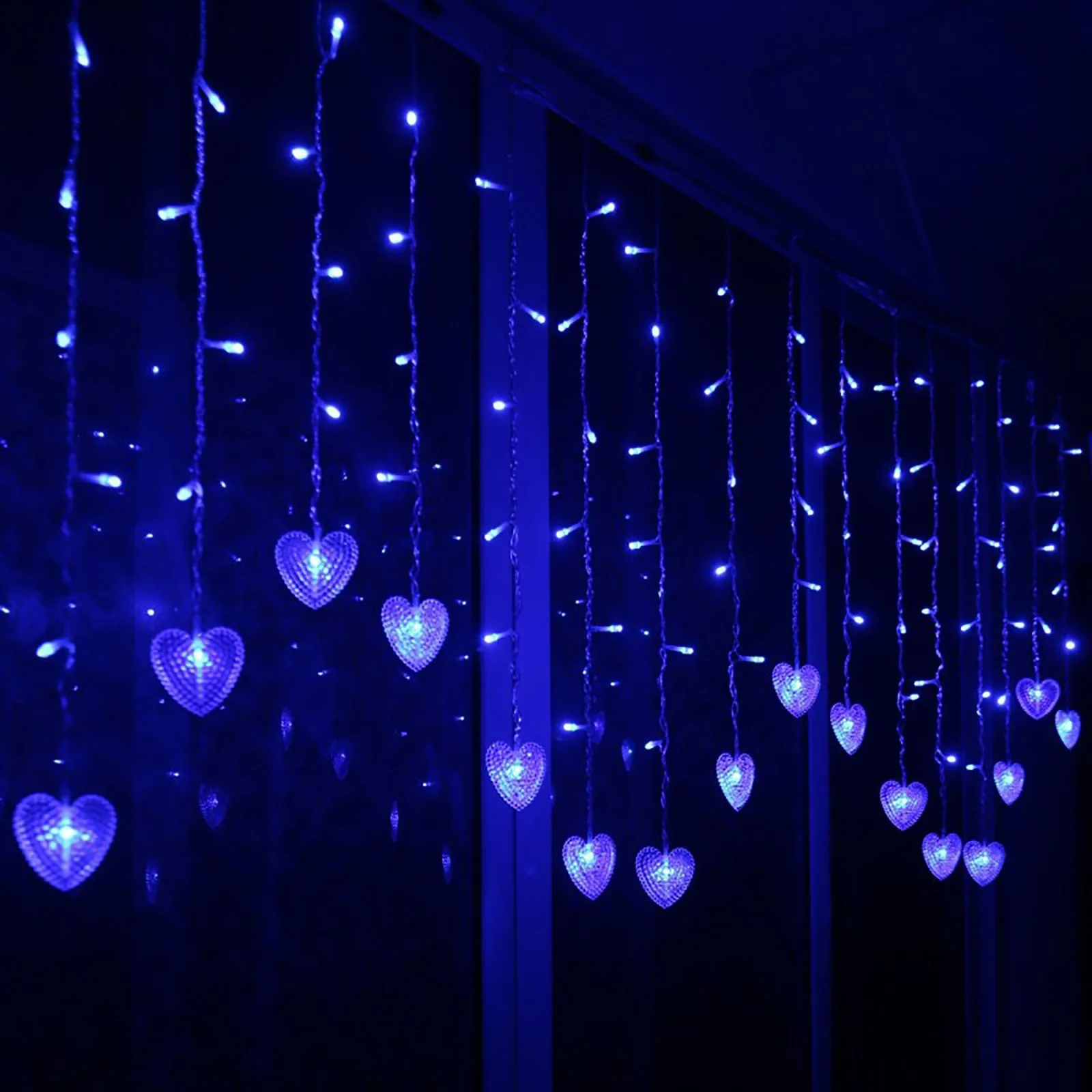Праздничная светодиодный ная Гирлянда-занавеска в форме сердца, гир...