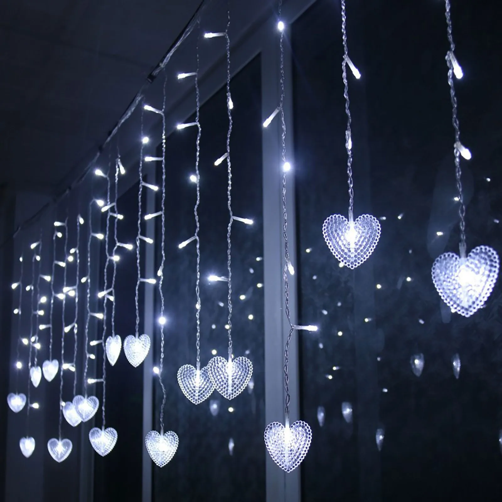 Светодиодная гирлянсветильник-занавеска в форме сердца 4*0,6 м