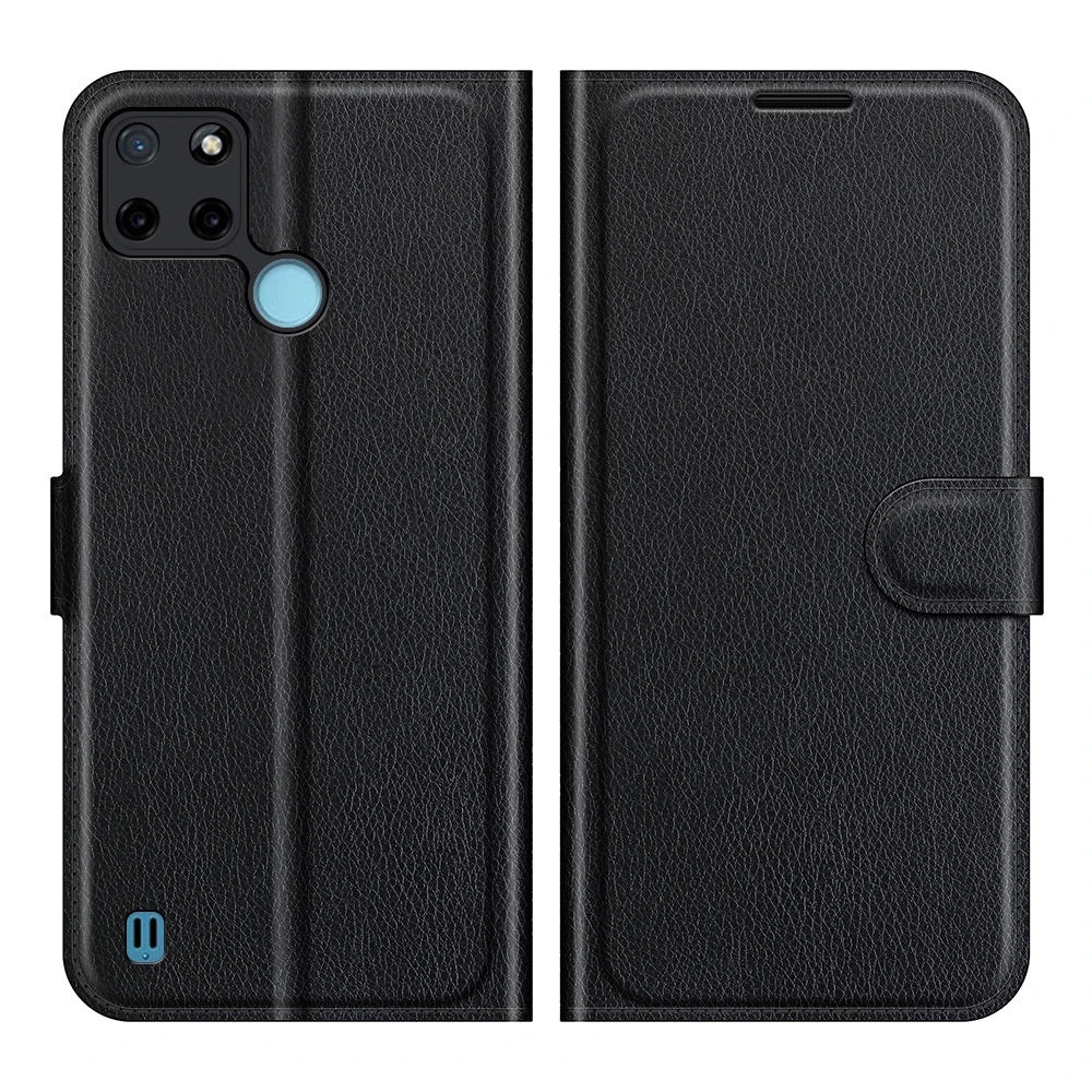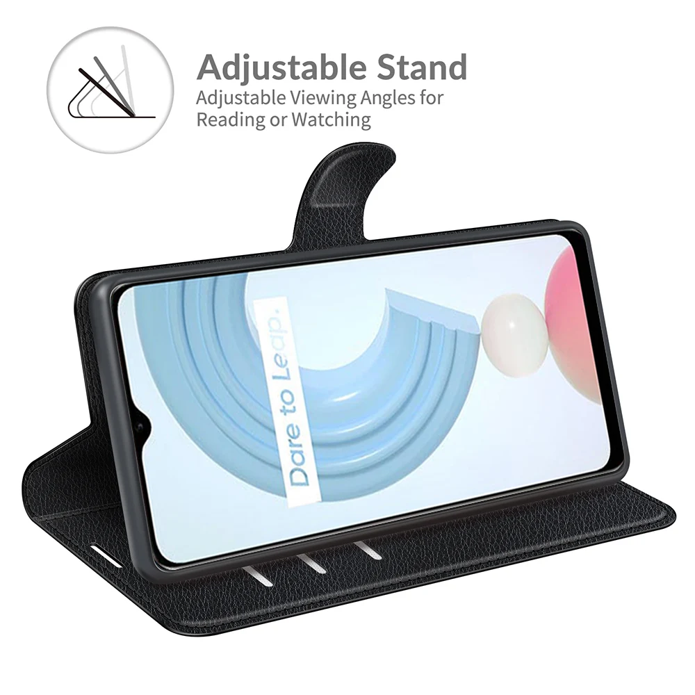 Чехол для OPPO Realme C21Y 2021 (6,5 дюйма), чехол-бумажник, чехол-книжка с отделением для карт, кожаный черный RMX3261
