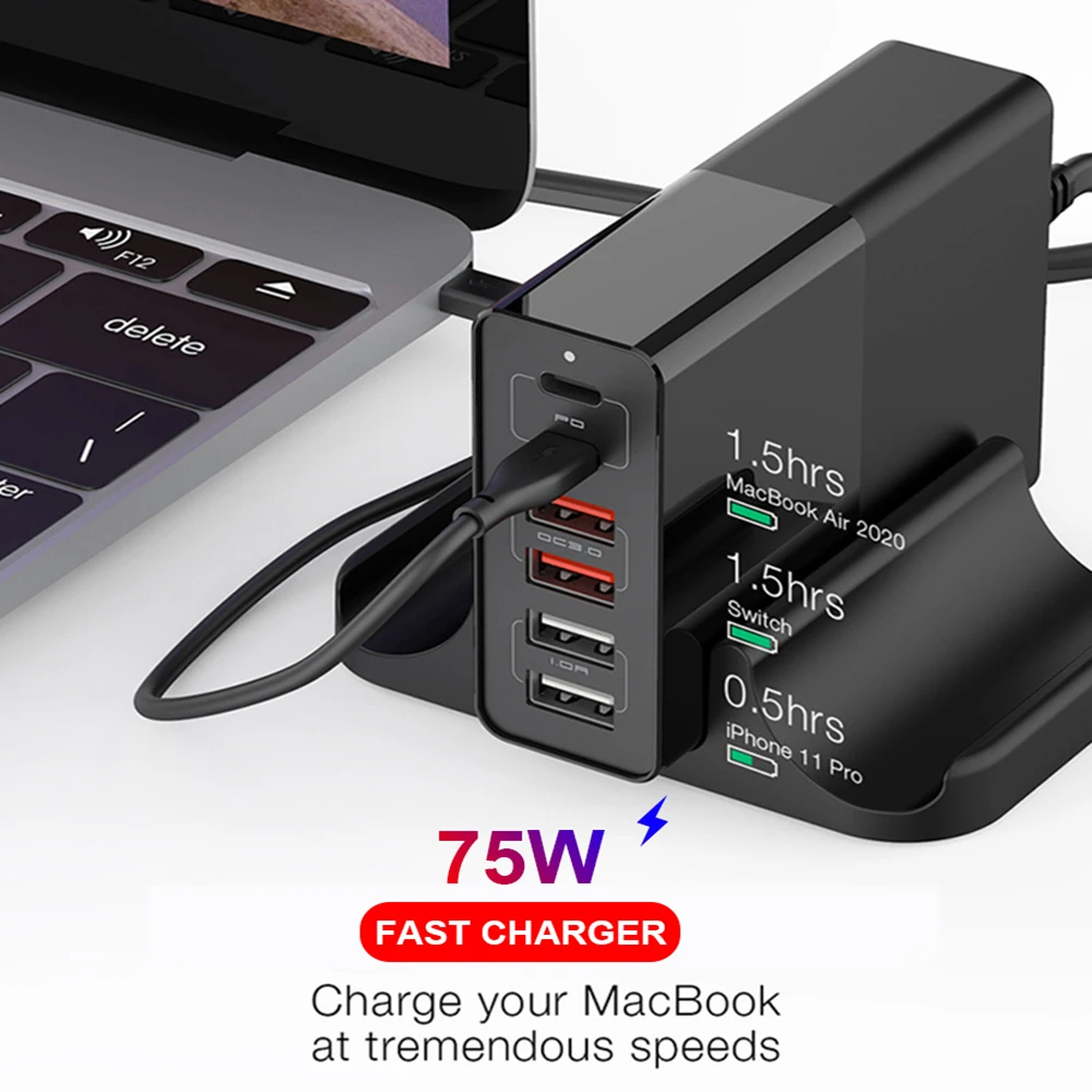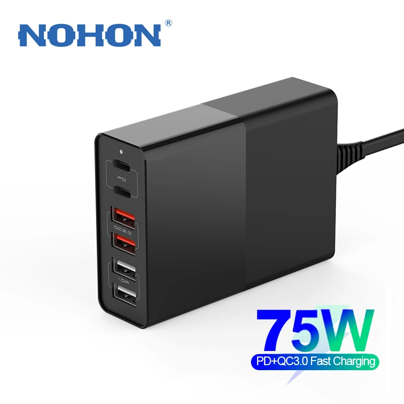 Сетевое зарядное устройство с 6 USB-портами, 75 Вт