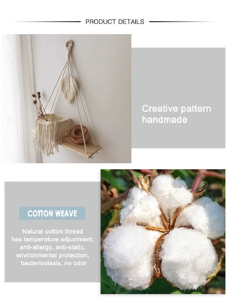 Настенная полка макраме: сочетает деревенскую полку с макраме, добавляя богемный, современный и минималистичный декор в ваше пространство.
