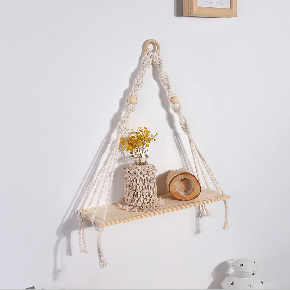 Настенные полки для макраме, домашний декор для гостиной, спальни, стеллаж в скандинавском стиле для хранения, деревянный гаражный комплект, полка