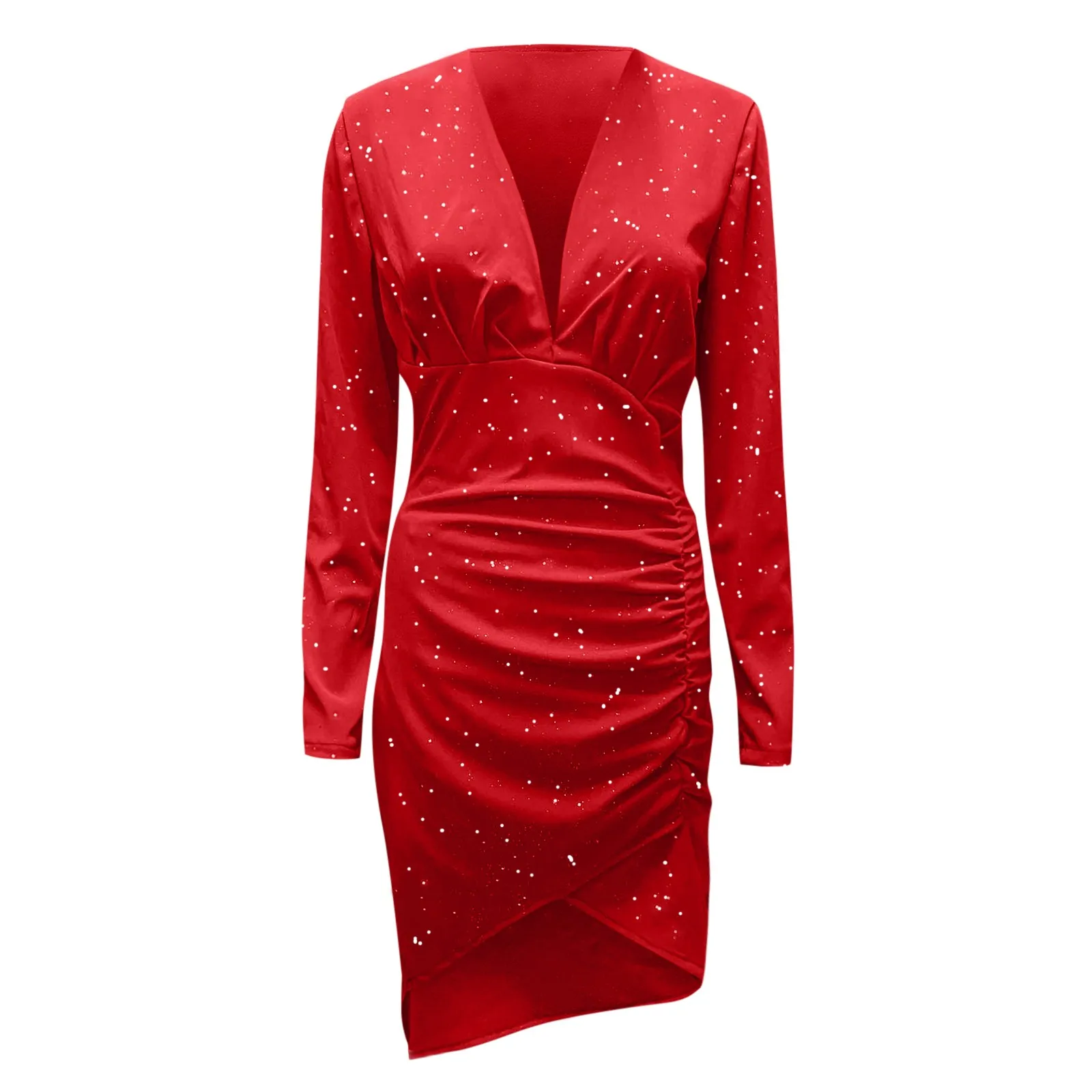 Соблазнительное вечернее облегающее платье, женские мини-платья с блестками и оборками, однотонные халаты с глубоким V-образным вырезом, женская одежда