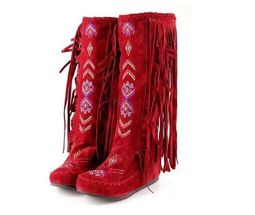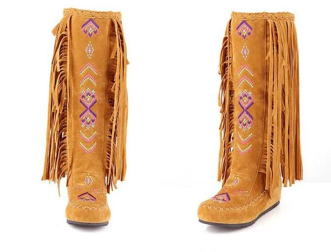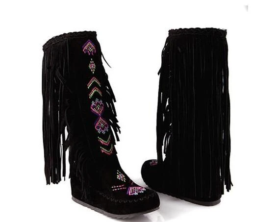 Женские ботильоны с вышивкой и блестками, длинные ботинки с бахромой и блестками, в стиле ретро
