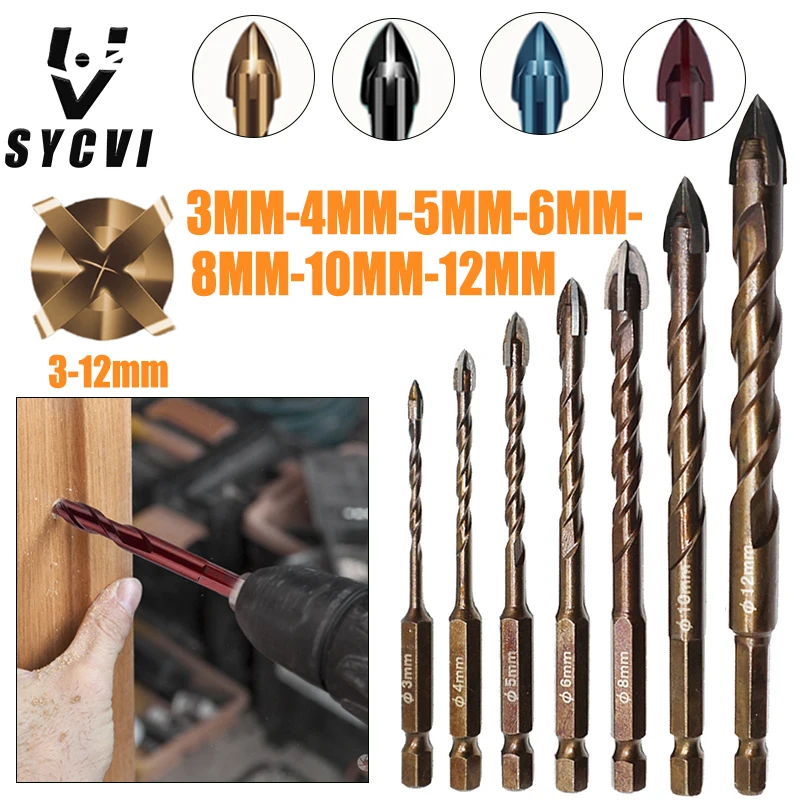 SYCVI 3-12 мм 7 шт. набор сверл с шестигранным углублением для стекла керамики бетона Открыватель отверстий кирпич твердый сплав треугольный набор инструментов