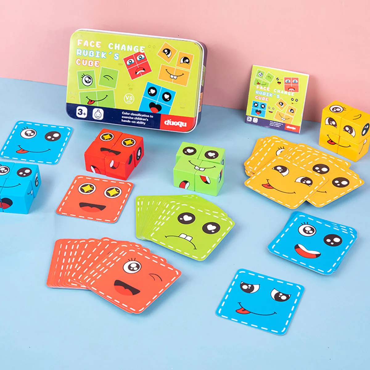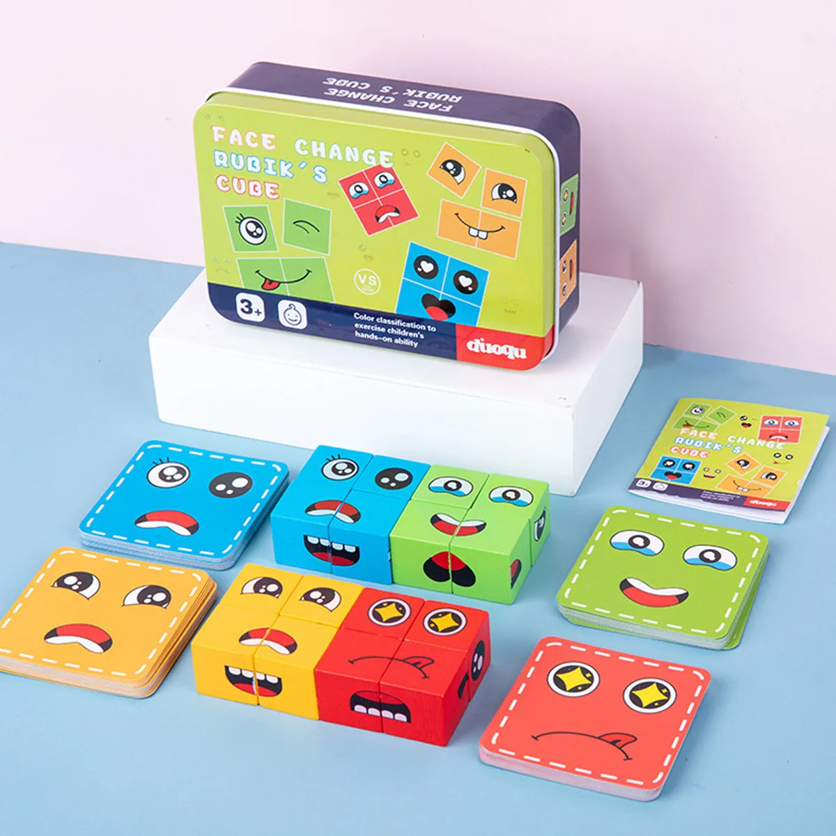 Кубик из мультфильма, меняющий лицо, настольная игра, деревянная головоломка, игрушка Монтессори, тревожность, снятие стресса, игрушки для детей