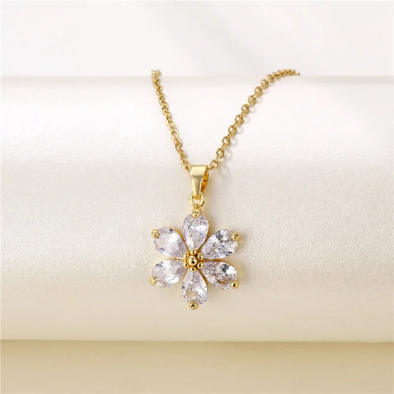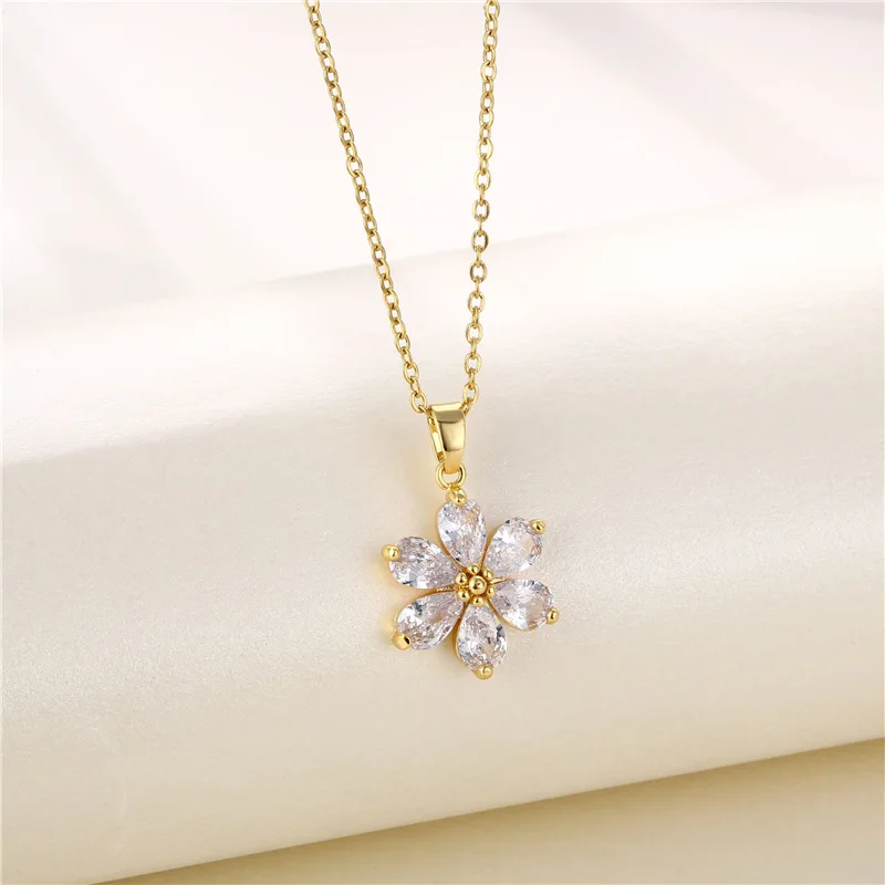 Новинка милые свадебные ювелирные изделия для женщин с цветком из кристаллов циркона золотого цвета из нержавеющей стали брикет женский подарок