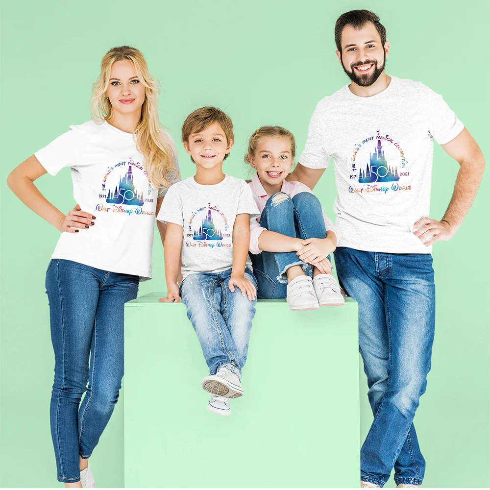 Футболка женская летняя с принтом, удобная рубашка с принтом для мамы и детей, одежда диснеевских костюмов на годовщину 50-летия