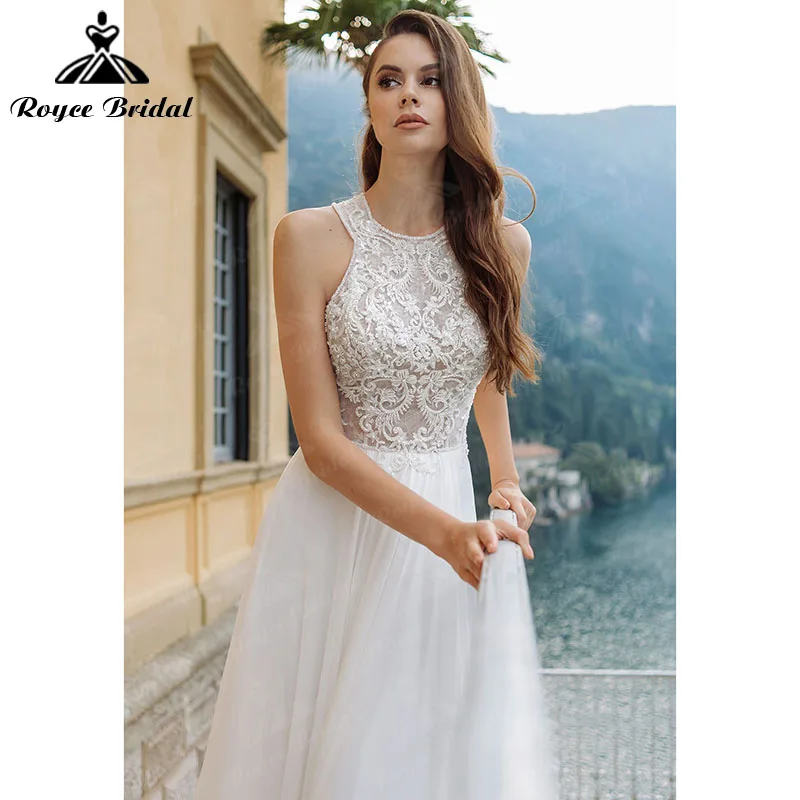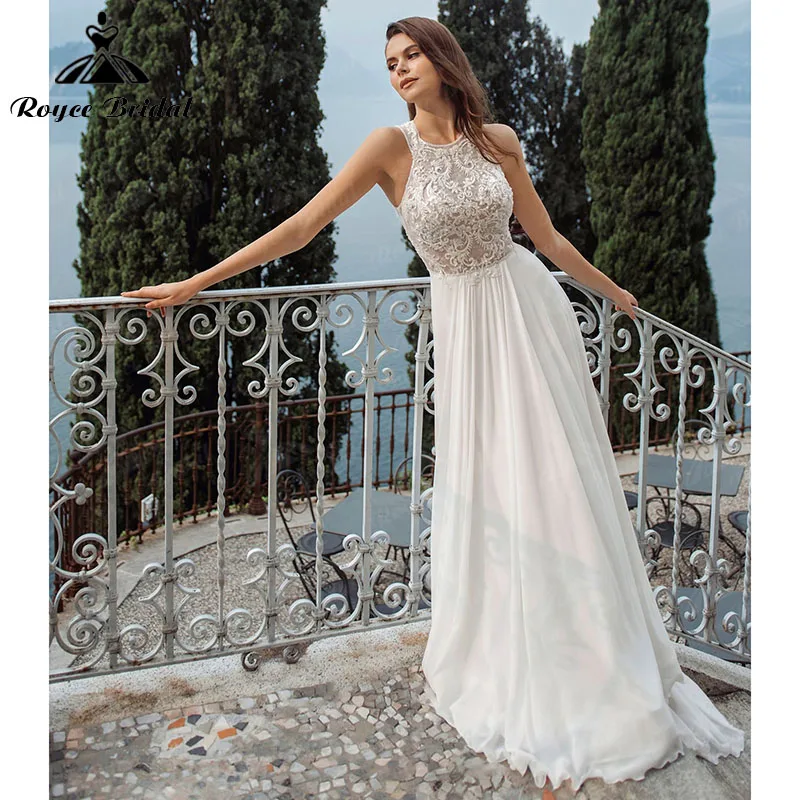 Богемное свадебное платье без рукавов с открытой спиной и кружевным лифом, шифоновое богемное платье с бисером для свадьбы 2022