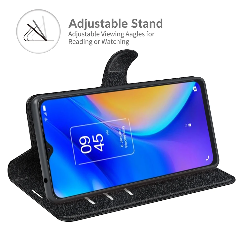 Чехол TCL20SE для TCL 20 SE (6.8in) T671, чехол-кошелек с отделением для карт и подставкой, кожаный черный флип-чехол T671s T671H TCL20 20SE TCL671 671