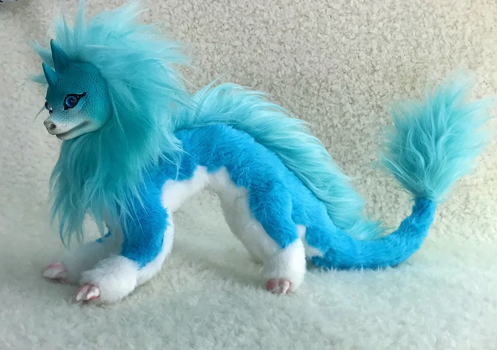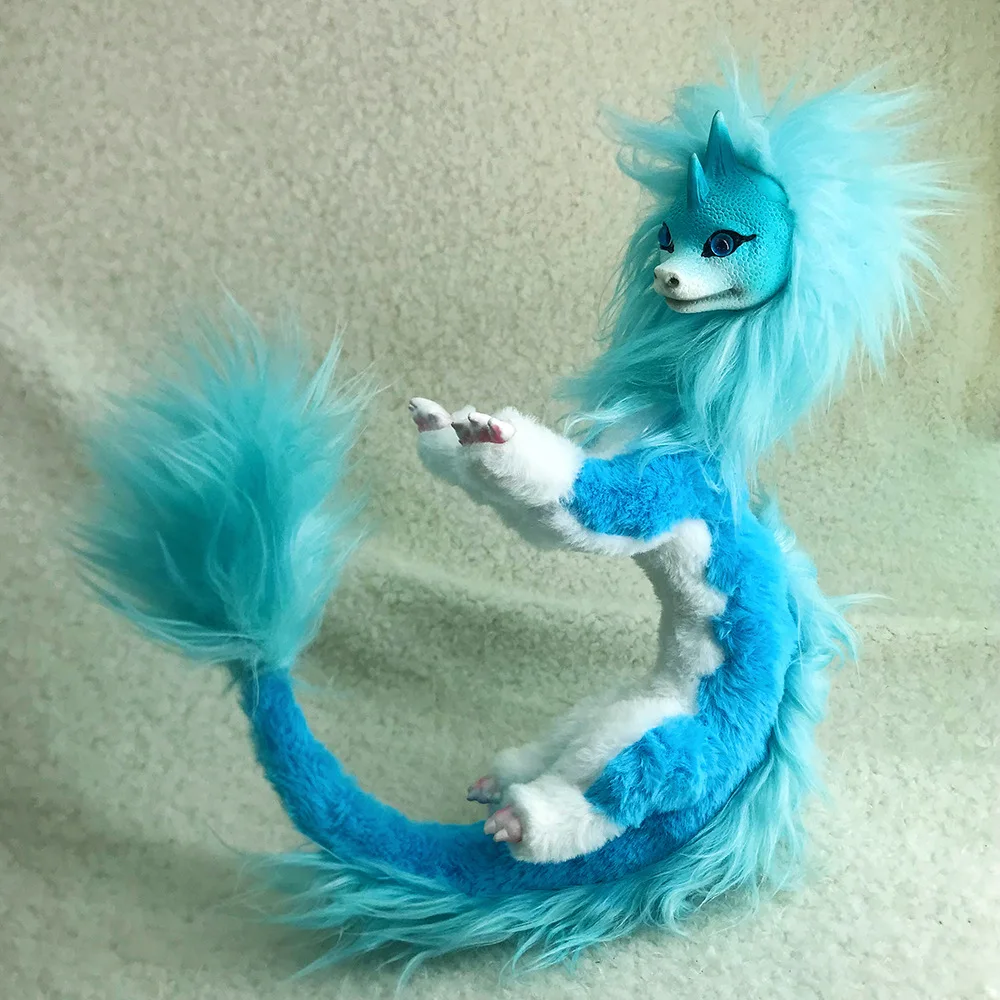 Фигура дракона голубая с мультяшным животным длиной 50 см, плюшевая...