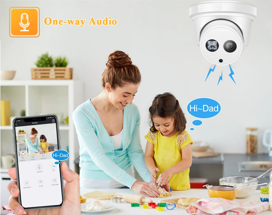 Молчаливое видео! Благодаря встроенному высокочувствящему микрофону вы можете четко слушать с другой стороны в любое время в любом месте через камеру. Микрофон будет улавливать звук вокруг камеры, предоставляя вам дополнительную информацию (и доказательства, если это необходимо) для вашей безопасности.