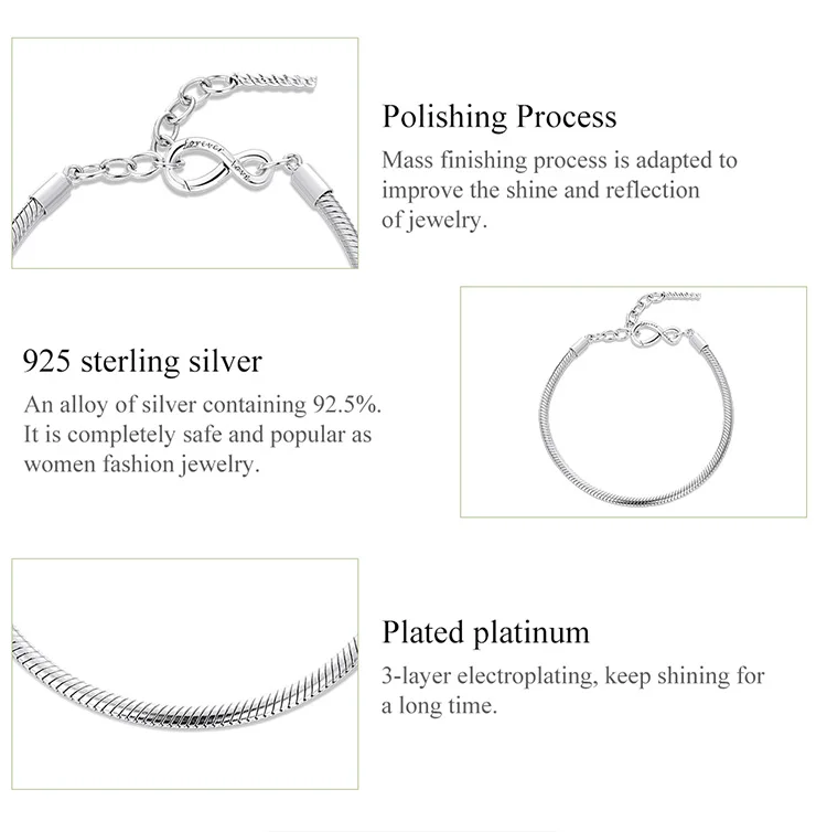 Женский браслет-цепочка Bamoer, серебряный браслет из стерлингового...