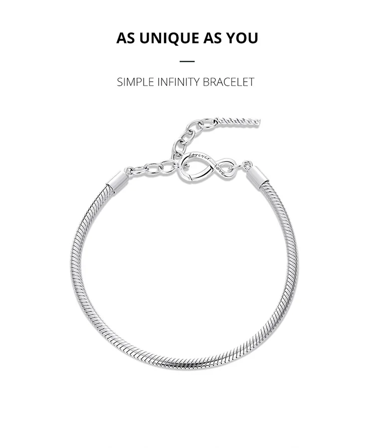 Браслет-цепочка женский Платиновый из серебра 925 пробы с символом бесконечности