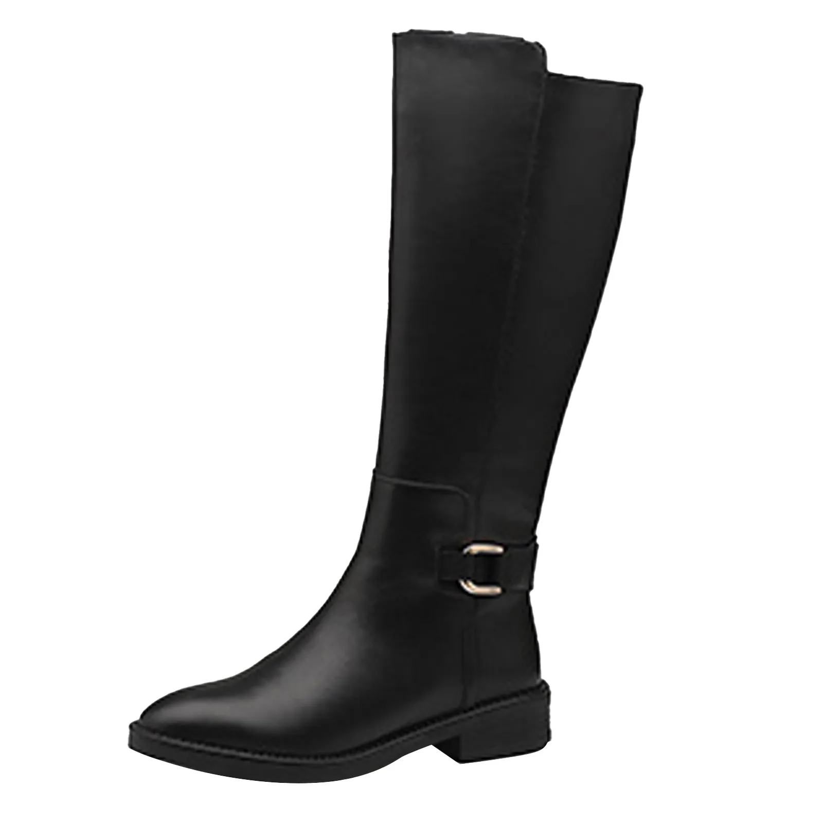 Женские сапоги 2021, модные зимние теплые мотоциклетные сапоги, высококачественные сапоги-трубки, мотоциклетные сапоги на низком каблуке, сапоги на молнии