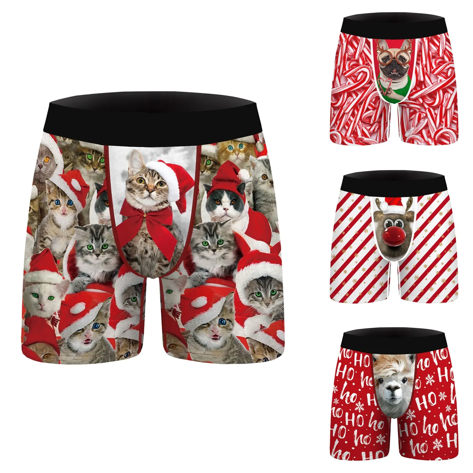 2022 мужские трусы-боксеры с рождественским принтом, мужские трусы-боксеры с забавным 3D принтом, мужские боксеры, мужские трусы-боксеры размера плюс