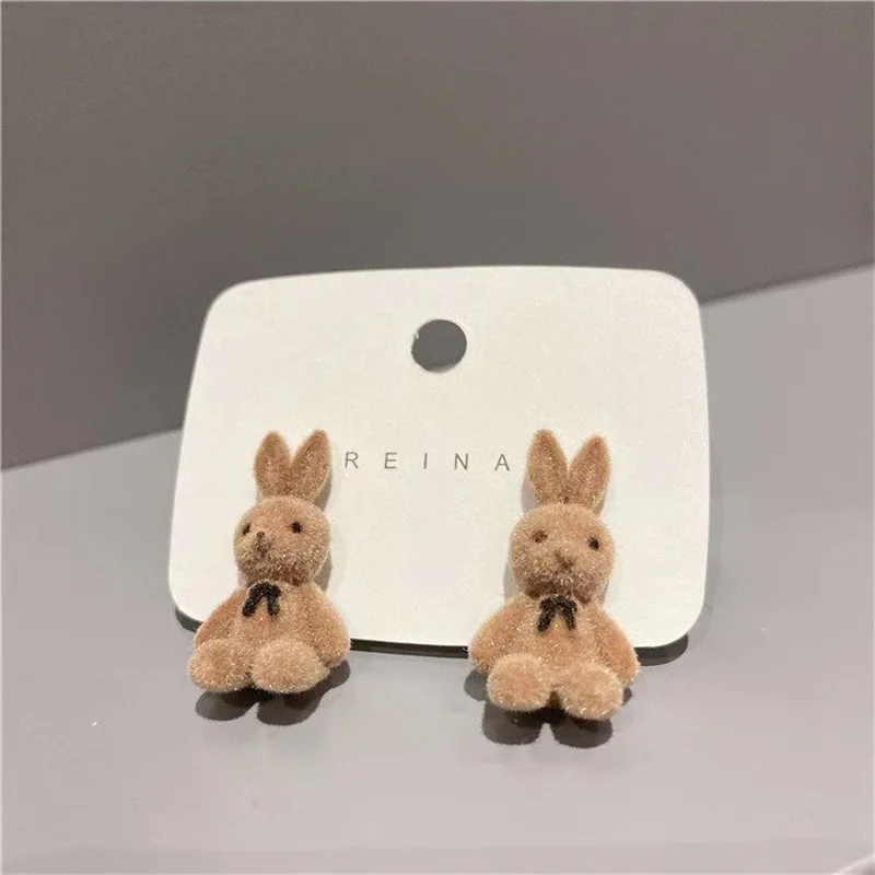 Модные изысканные женские серьги с Флокированным Кроликом, новые темпераментные милые серьги с мультяшными животными, ювелирные изделия для вечевечерние для девочек, подарки