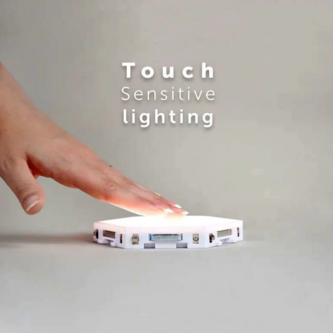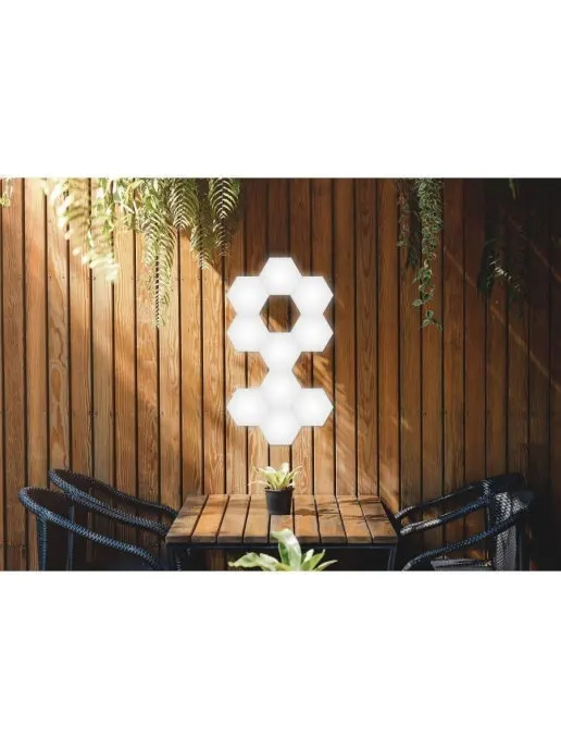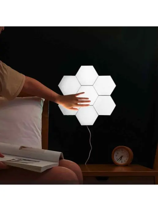 Новинка сезона! Светодиодный настенный светильник конструктор. Состоит из отдельных шестиугольных модулей, соединяя которые можно создавать любые конструкции. В наборе 4 модулей и блок питания. Модули крепятся практически к любой поверхности, благодаря двухстороннему скотчу, который идет в комплекте, а так же на задней поверхности присутствуют отверстия для саморезов. Достаточно подключить блок питания к одному из светильничков, остальные соединить между собой магнитами, расположенными на каждой из 6 сторон. Благодаря сенсорному покрытию, управлять модулями можно прикосновением пальца, создавая необычайный уют и стиль в любом помещении.ВАЖНО: магнитики на каждой из сторон модуля служат проводником электроэнергии, а не креплением!
