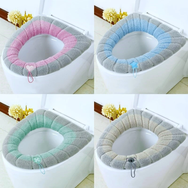 Зимний чехол для сиденья унитаза, коврик для ванной комнаты, для теплого коврика для унитаза, подушка, ручка, толстая мягкая моющаяся накидка, подогреватель, аксессуары