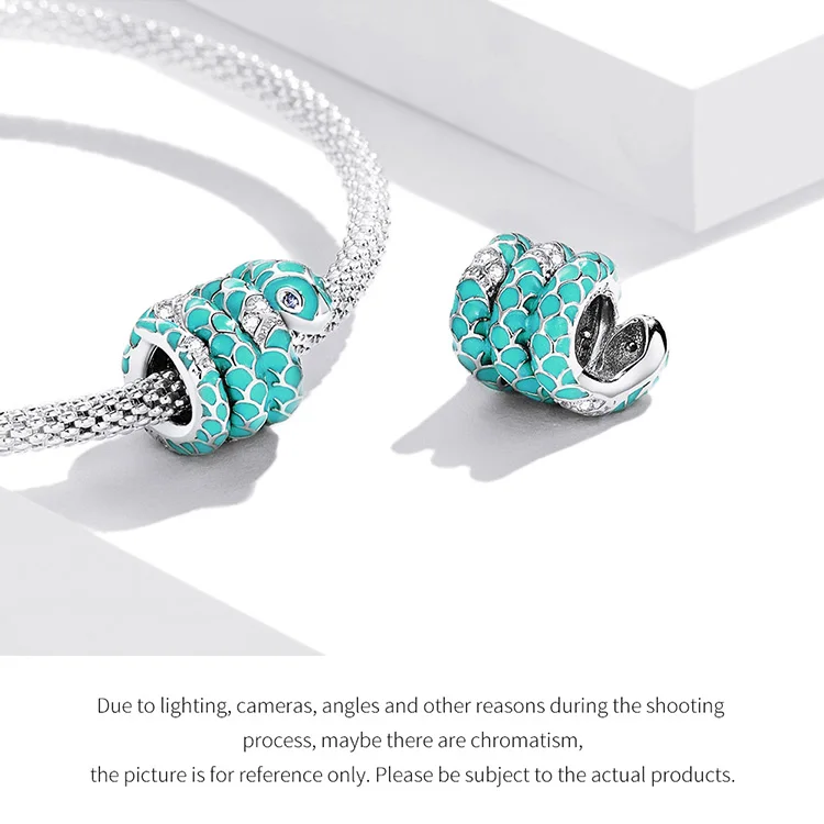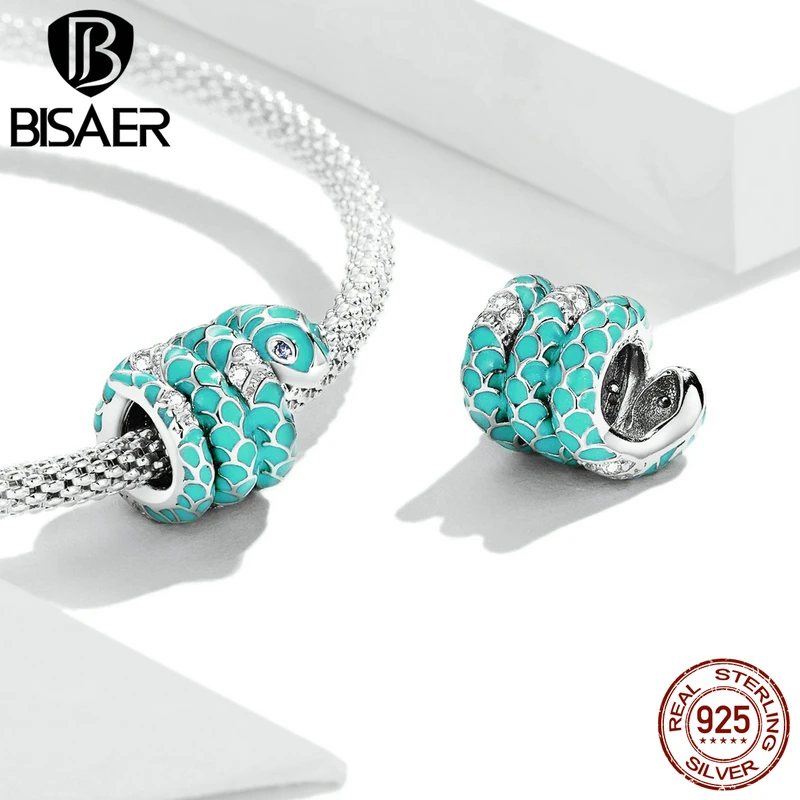 Бисер, бриллиантовый серебряный шарм, синяя змея, животное из циркония, подходит для женского серебра S925, изготовление ювелирных изделий EFC576