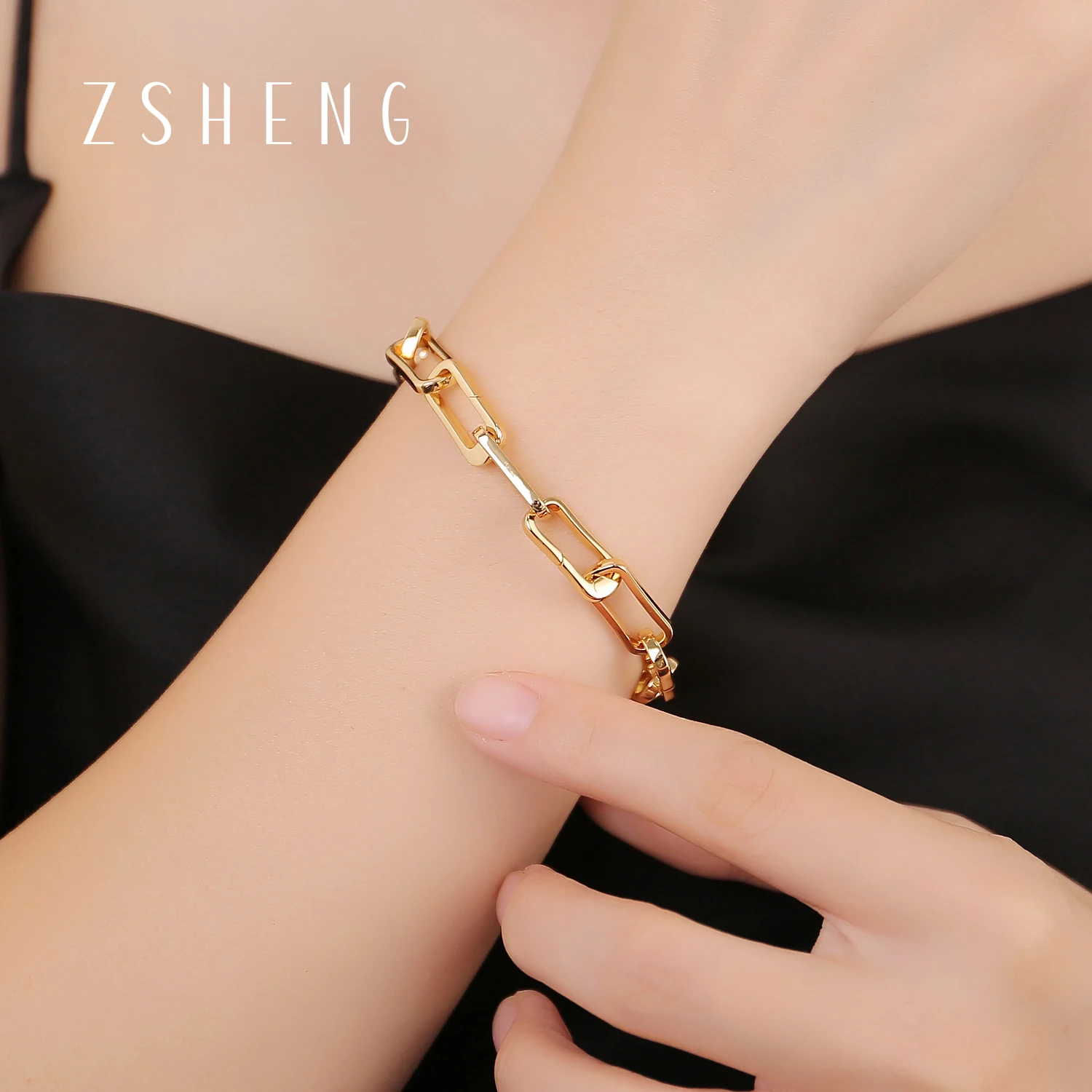 Дизайн ZSHENG: 14 прямоугольных круглых петель, 7 регулируемых пряжек и 7 закрытых петель объединены для формирования 21 см звеньев цепи браслетов.