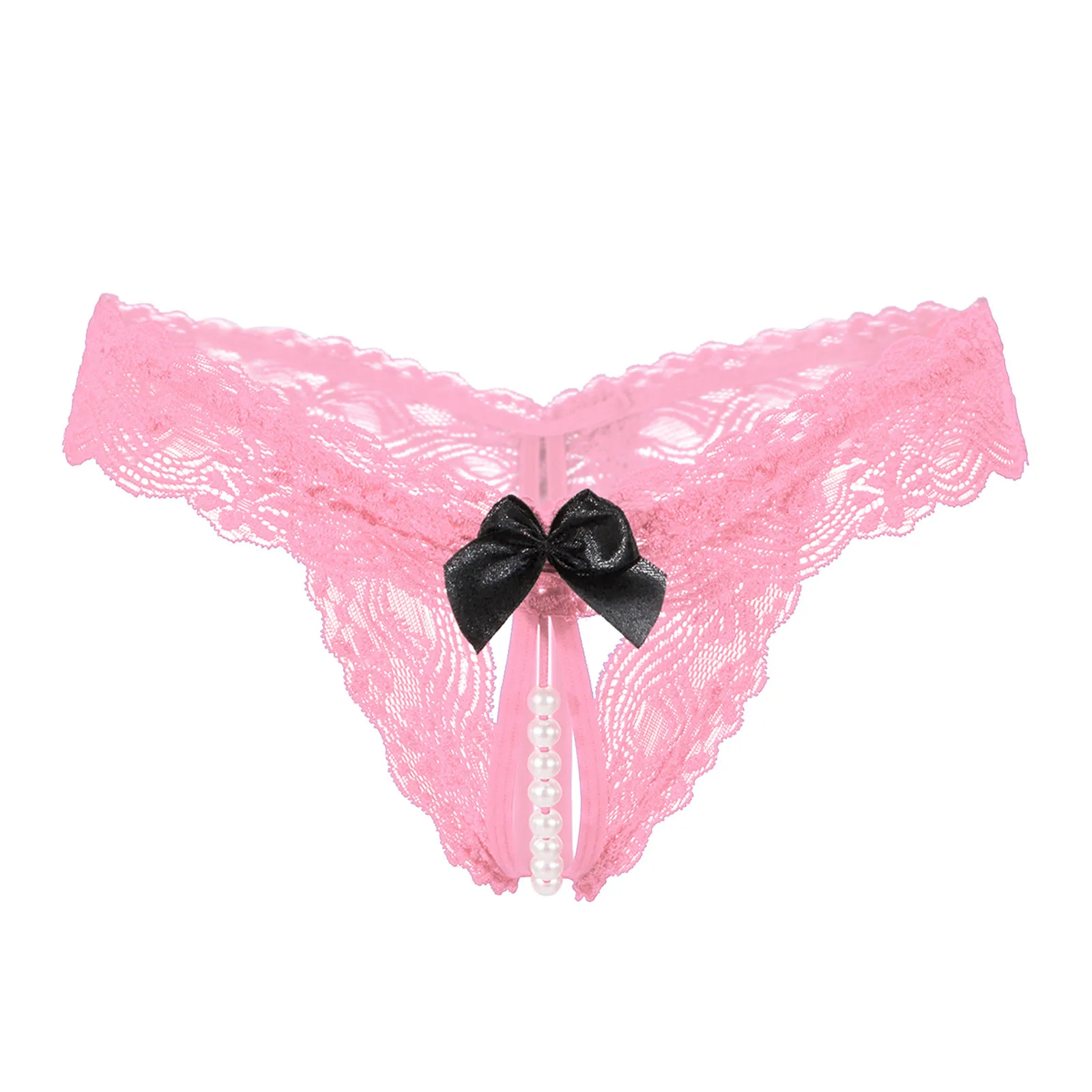 Трусики женские кружевные бесшовные, Эротические стринги с жемчугом, пикантные прозрачные трусы с вырезом, нижнее белье
