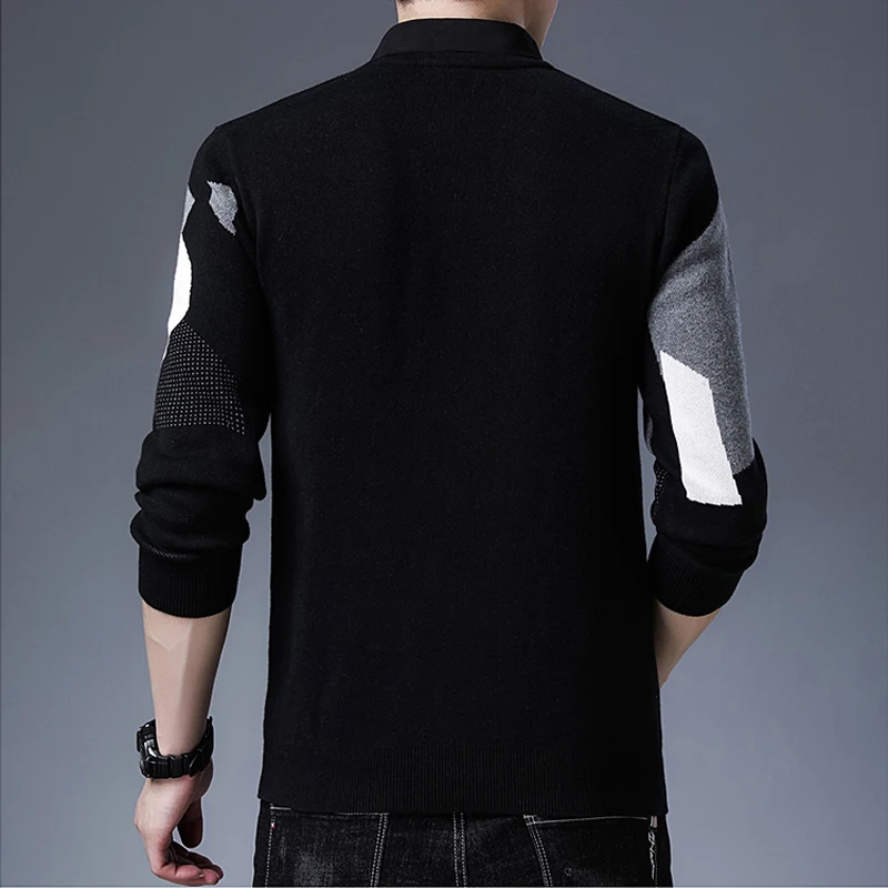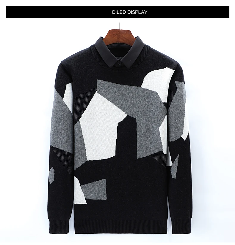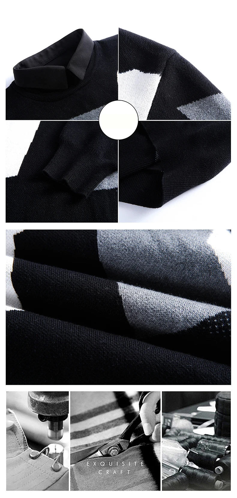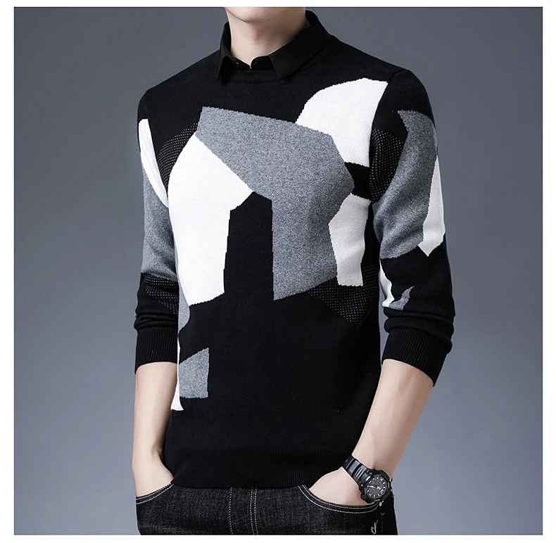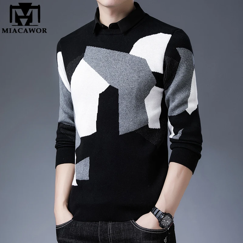 Мужской теплый шерстяной свитер MIACAWOR, пуловер в стиле пэчворк, ...