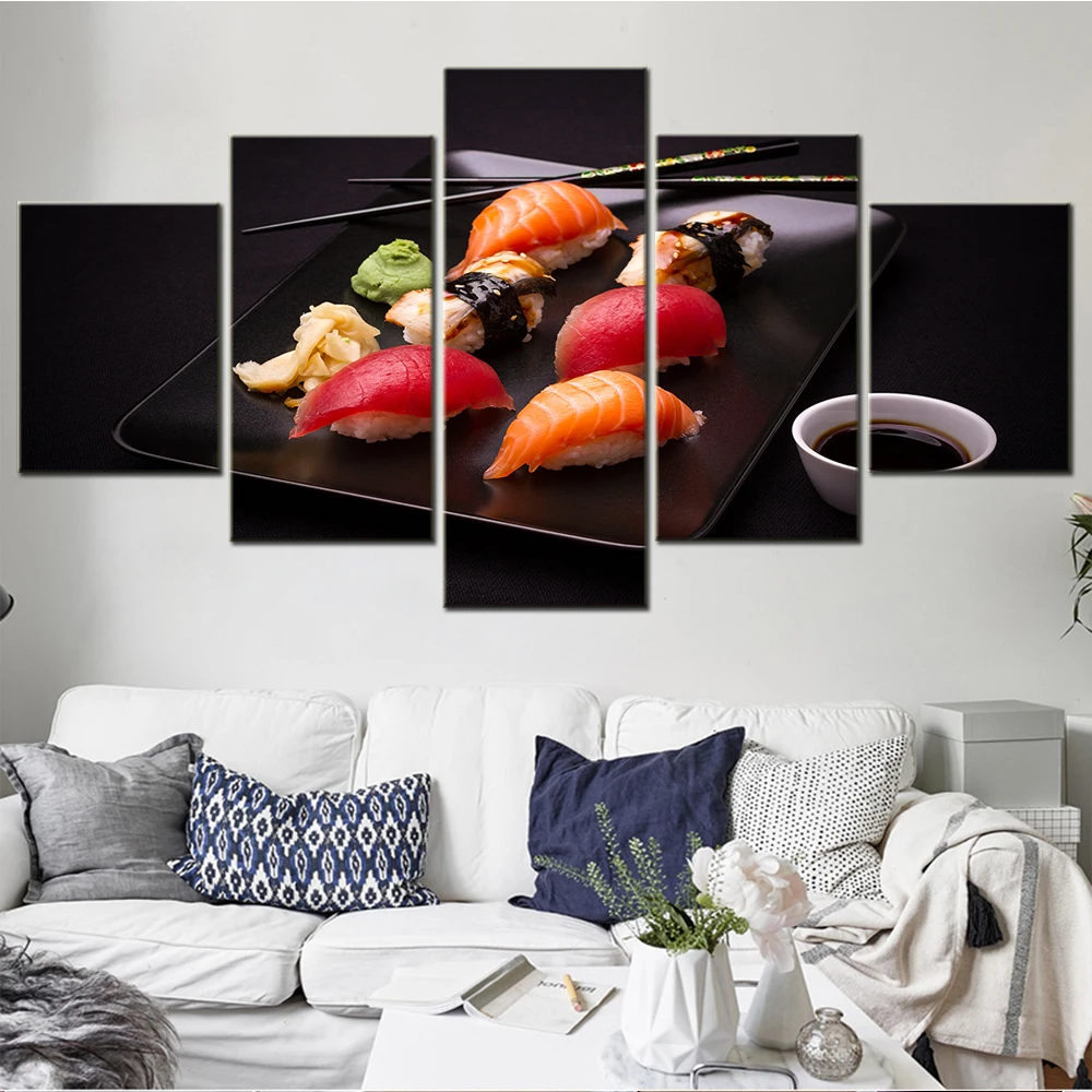 Японские суши, угорь, лосось, тунца, холст, настенные картины, настенный плакат, картина для ресторана, декор для кухни и комнаты