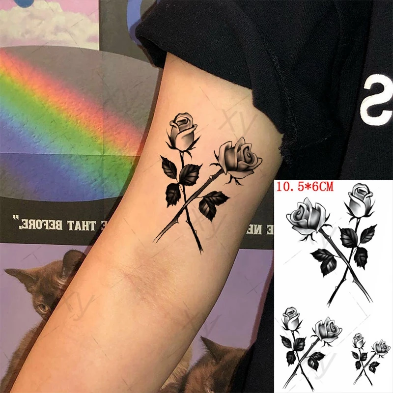 Черная водостойкая временная татуировка клоуна, наклейка для женщин, искусственная татуировка для рук, талии, пальцев, розы, имитация татуировки для леди, детей