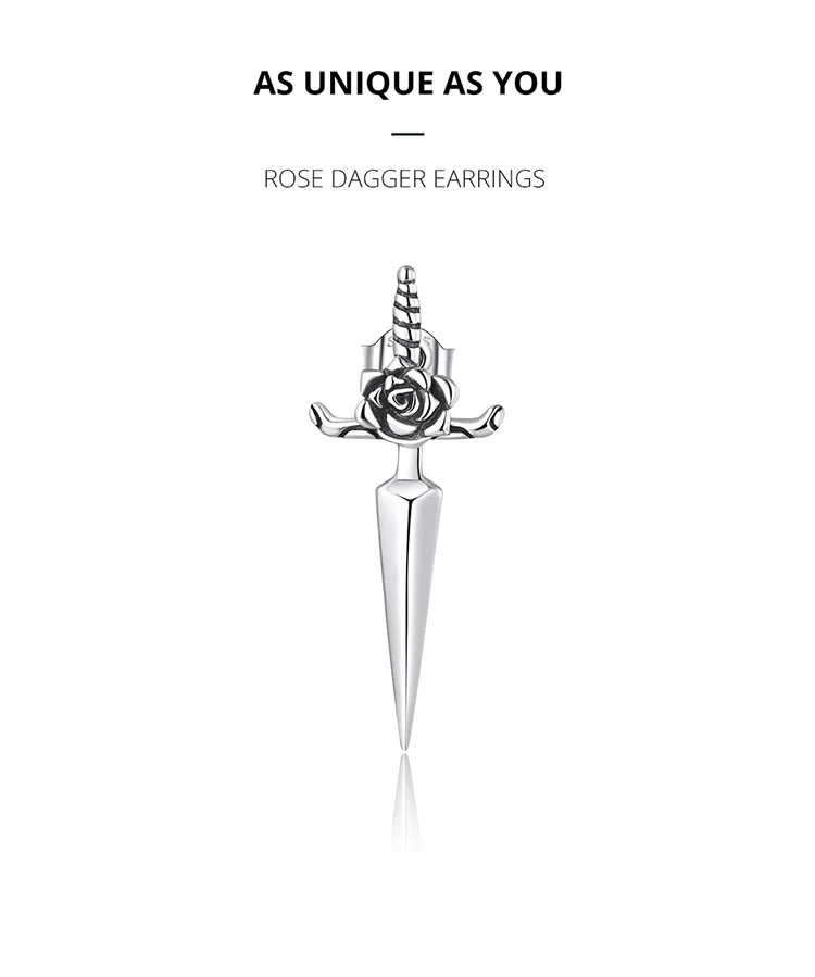 Женские серьги-гвоздики в вечерние кинжала, из серебра 925 пробы