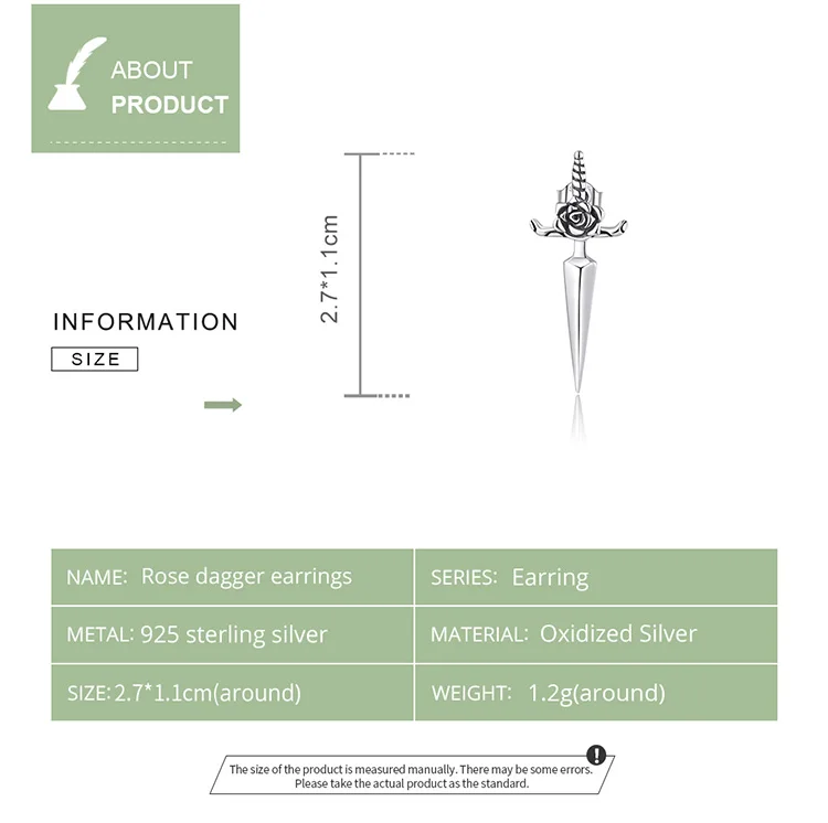 1 шт., BISAER, серебро 925 пробы, серьги-гвоздики с розовым кинжало...
