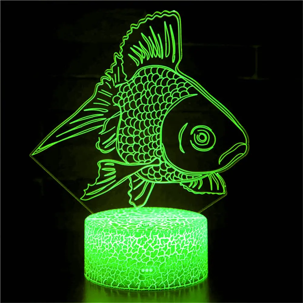 Светодиодный ночсветильник 3D для рыбалки с 7 цветсветильник лампы для украшения дома визуализация Оптическая иллюзия Акула Прямая поставка