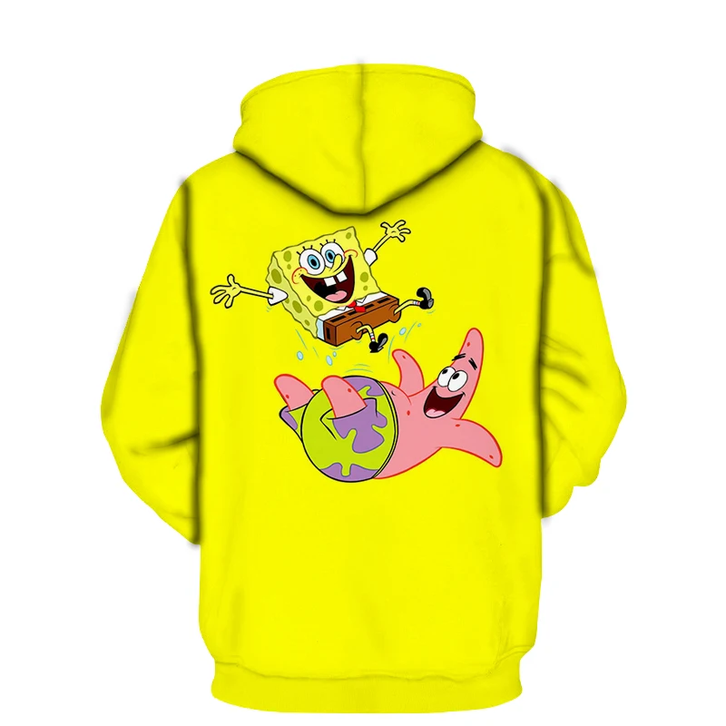 Новинка 20212022, забавная толстовка с капюшоном желтого цвета, мужская толстовка с 3D принтом в виде губки, мужской свитер, мультяшный пуловер в стиле аниме, толстовка унисекс