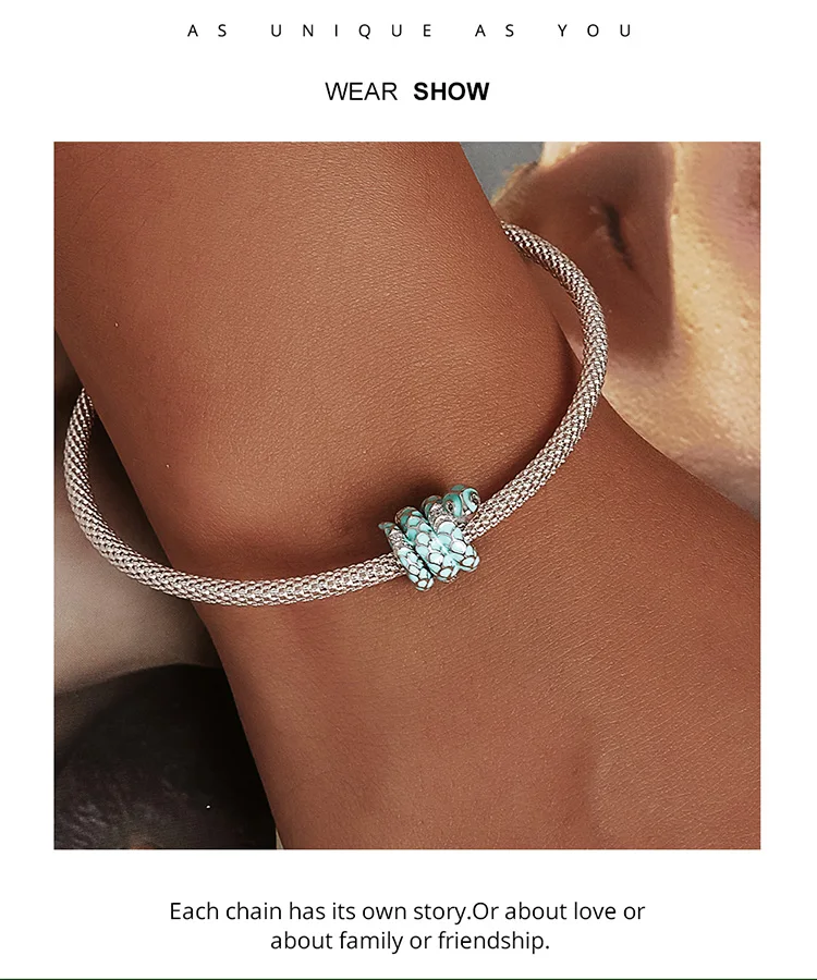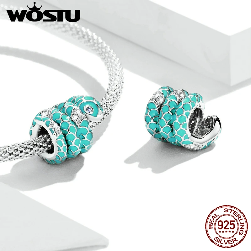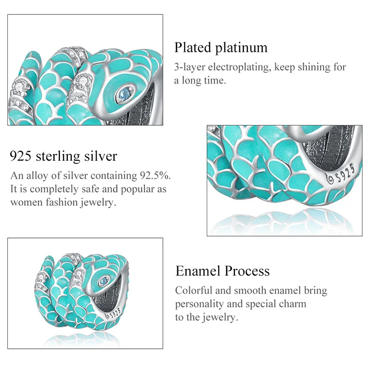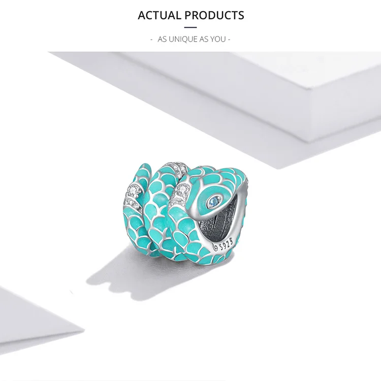 Бисер, бриллиантовый серебряный шарм, синяя змея, животное из цирко...