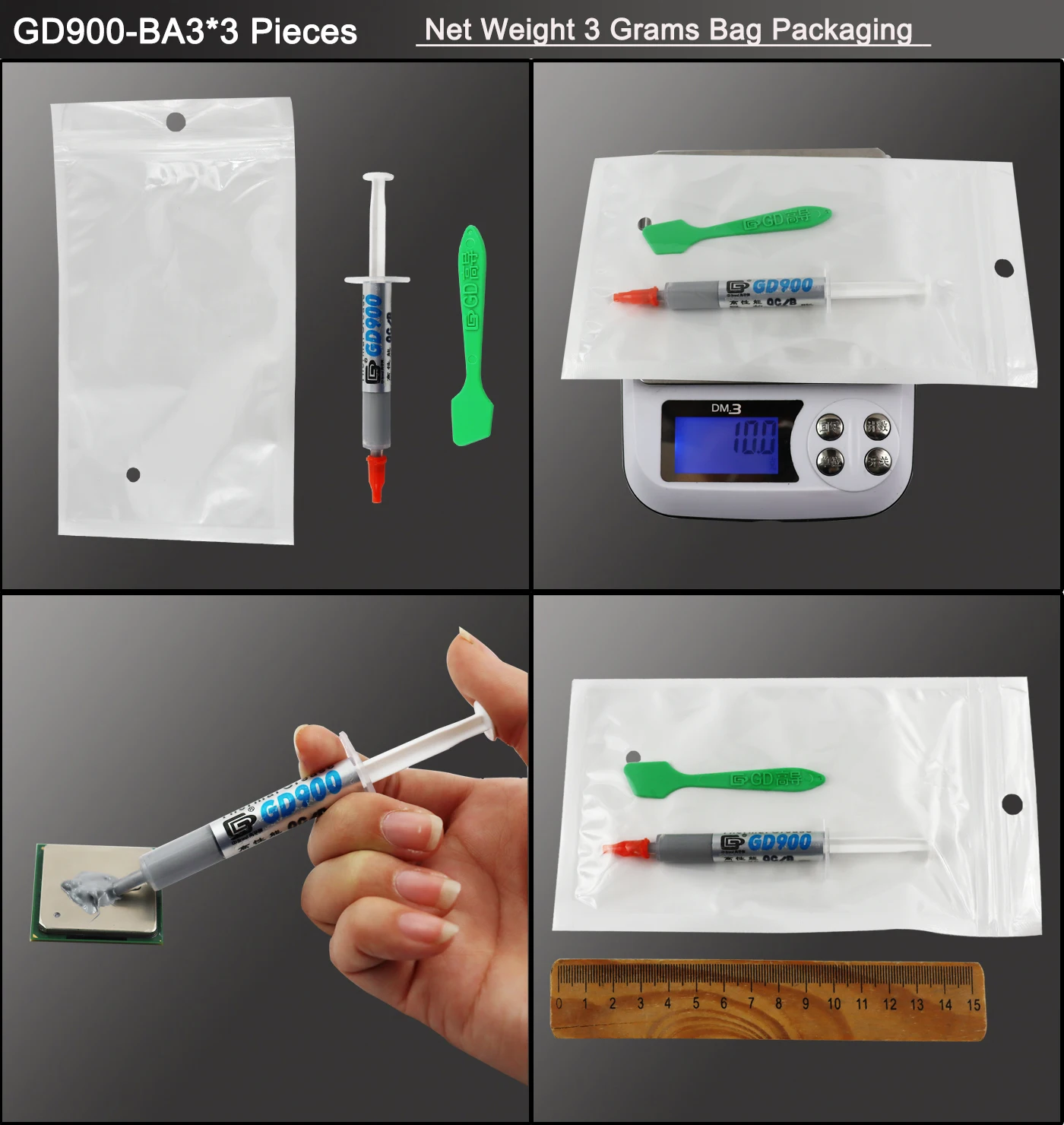 GD900 Тепловая паста выбирает гораздо более крошечные частицы диаметром оксида металла в качестве основного сырья, используется для заполнения зазора между источником тепла и устройством теплоотвода. Его Выдающаяся производительность на CPU GPU светодиодный процессор удовлетворит ваши высокие стандартные требования к системе охлаждения.