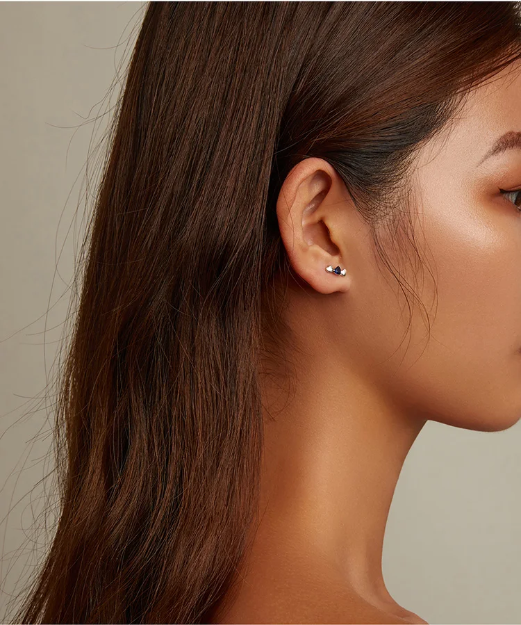 Серьги-гвоздики женские из серебра 925 пробы контрастных цветов