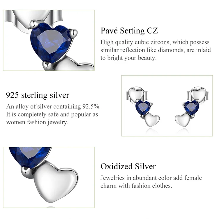 Женские серьги-гвоздики из серебра 925 пробы, с голубыми фианитами