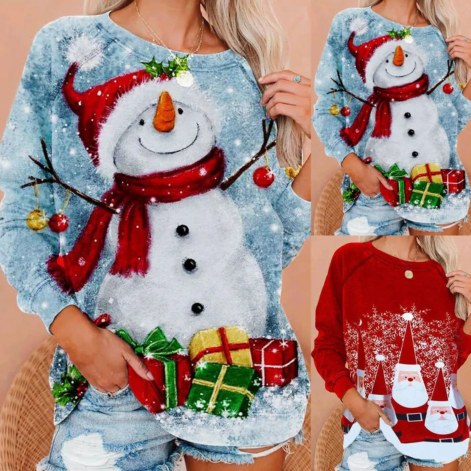 Рождественские толстовки, женские толстовки с круглым вырезом, женские топы, Осень-зима 2021, новый пуловер с длинным рукавом и принтом для женщин 2022