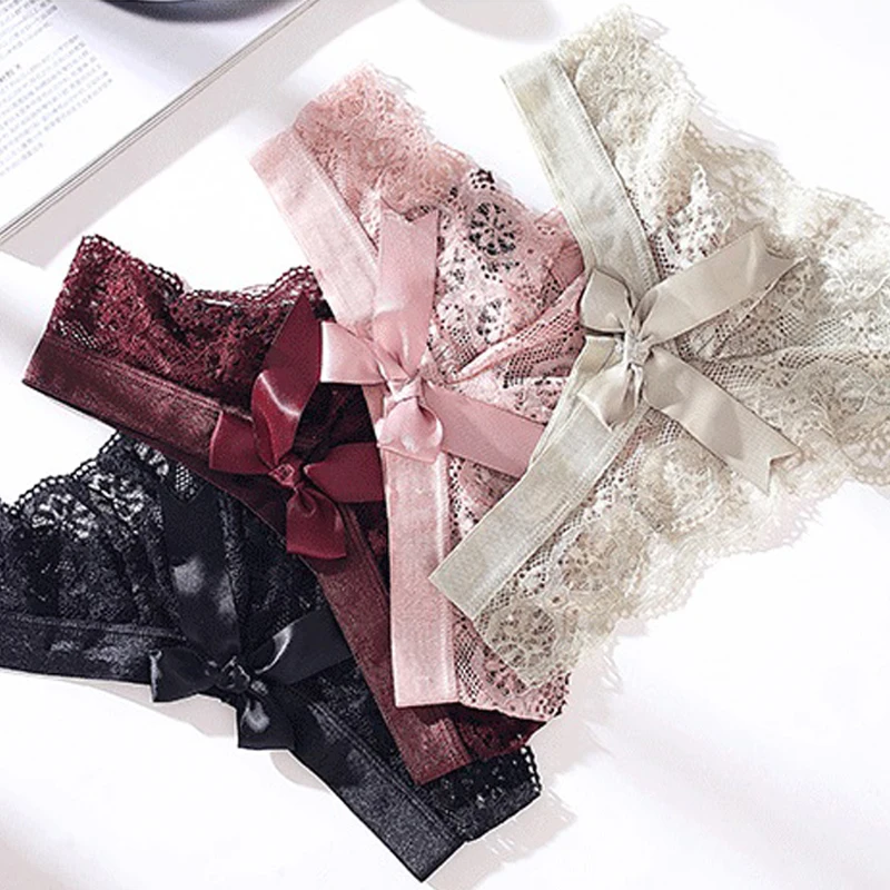 Трусы женские кружевные бесшовные, прозрачные, с бантиком сзади